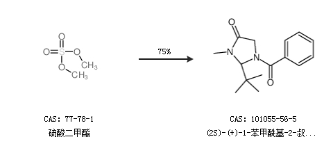 1.通過硫酸二甲酯合成(2S)-(+)-1-苯甲酰基-2-叔丁基-3-甲基-4-咪唑啉酮,收率約75%;