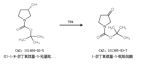 2.通過(S)-1-N-叔丁氧羰基-3-羥基吡咯烷合成1-叔丁氧碳基-3-吡咯烷酮,收率約78%;