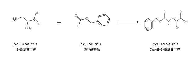 1.通過3-氨基異丁酸和氯甲酸芐酯合成Cbz-dl-3-氨基異丁酸
