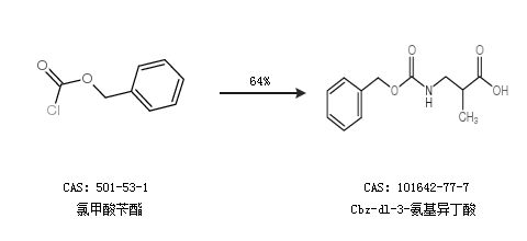 2.通過氯甲酸芐酯合成Cbz-dl-3-氨基異丁酸,收率約64%;