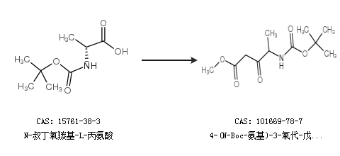 2.通過N-叔丁氧羰基-L-丙氨酸合成4-(N-Boc-氨基)-3-氧代-戊酸甲酯
