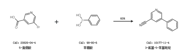2.通過5-溴煙酸和苯硼酸合成3-氰基-5-苯基吡啶,收率約60%;