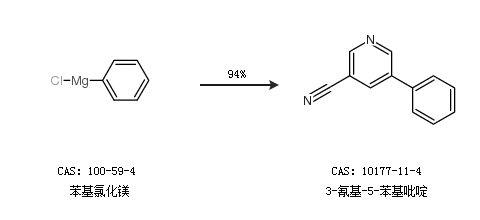 1.通過苯基氯化鎂合成3-氰基-5-苯基吡啶,收率約94%;