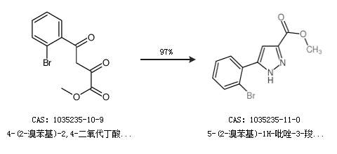 1.通過(guò)4-(2-溴苯基)-2,4-二氧代丁酸甲酯合成5-(2-溴苯基)-1H-吡唑-3-羧酸甲酯,收率約97%;