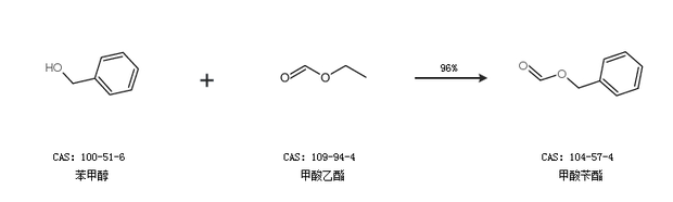 2.通過苯甲醇和甲酸乙酯合成甲酸芐酯,收率約96%;