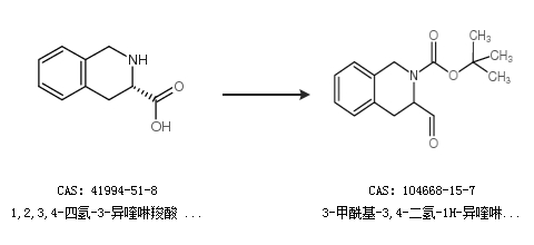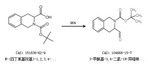 1.通過N-(四丁氧基羧基)-1,2,3,4-四羥基異喹啉合成3-甲酰基-3,4-二氫-1H-異喹啉-2-羧酸叔丁酯,收率約96%;