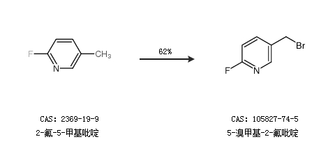 1.通過2-氟-5-甲基吡啶合成5-溴甲基-2-氟吡啶,收率約62%;