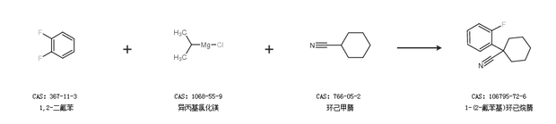 1.通過1,2-二氟苯、異丙基氯化鎂和環(huán)己甲腈合成1-(2-氟苯基)環(huán)已烷腈