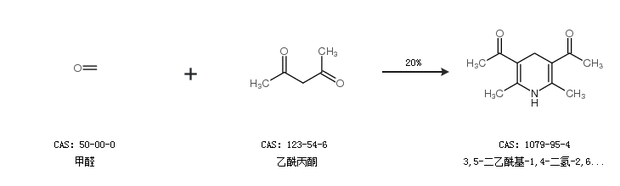 2.通過甲醛和乙酰丙酮合成3,5-二乙?;?1,4-二氫-2,6-二甲基吡啶,收率約20%;