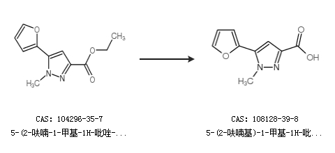 1.通過(guò)5-(2-呋喃-1-甲基-1H-吡唑-3-羧酸乙酯合成5-(2-呋喃基)-1-甲基-1H-吡唑-3-羧酸