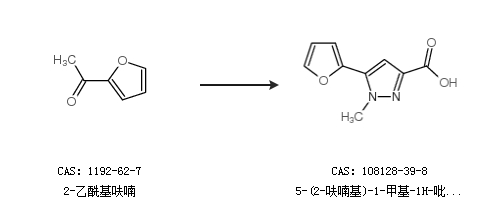 2.通過(guò)2-乙?;秽铣?-(2-呋喃基)-1-甲基-1H-吡唑-3-羧酸