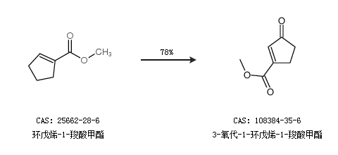 1.通過環(huán)戊烯-1-羧酸甲酯合成3-氧代-1-環(huán)戊烯-1-羧酸甲酯,收率約78%;