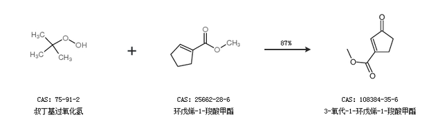 2.通過叔丁基過氧化氫和環(huán)戊烯-1-羧酸甲酯合成3-氧代-1-環(huán)戊烯-1-羧酸甲酯,收率約87%;