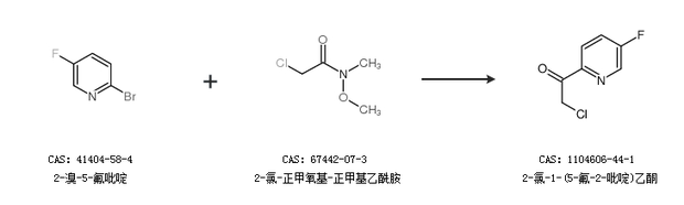 1.通過2-溴-5-氟吡啶和2-氯-正甲氧基-正甲基乙酰胺合成2-氯-1-(5-氟-2-吡啶)乙酮