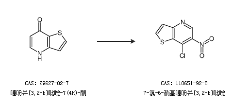 1.通過噻吩并[3,2-b]吡啶-7(4H)-酮合成7-氯-6-硝基噻吩并[3,2-b]吡啶