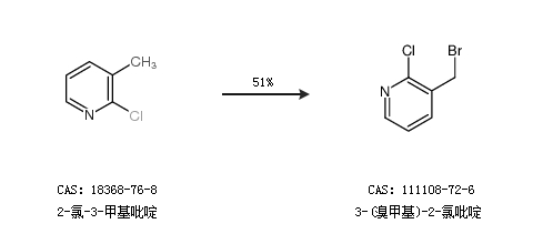 1.通過2-氯-3-甲基吡啶合成3-(溴甲基)-2-氯吡啶,收率約51%;