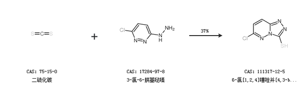1.通過二硫化碳和3-氯-6-肼基噠嗪合成6-氯[1,2,4]噻唑并[4,3-b]吡嗪-3-硫醇,收率約37%;