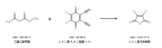 2.通過乙酰乙酸甲酯和2,3-二氯-5,6-二氰基-1,4-苯醌合成2,3-二氯馬來酸酐
