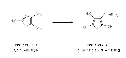 1.通過2,3,5-三甲基噻吩合成3-(氰甲基)-2,4,5-三甲基噻吩