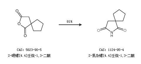 1.通過(guò)2-噁螺[4.4]壬烷-1,3-二酮合成2-氮雜螺[4.4]壬烷-1,3-二酮,收率約81%;