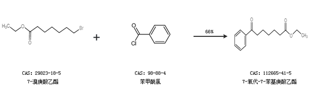 1.通過7-溴庚酸乙酯和苯甲酰氯合成7-氧代-7-苯基庚酸乙酯,收率約66%;
