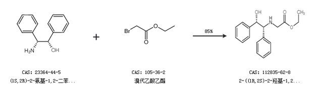 1.通過(guò)(1S,2R)-2-氨基-1,2-二苯基乙醇和溴代乙酸乙酯合成2-((1R,2S)-2-羥基-1,2-二苯基乙基氨基)乙酸乙酯,收率約85%;