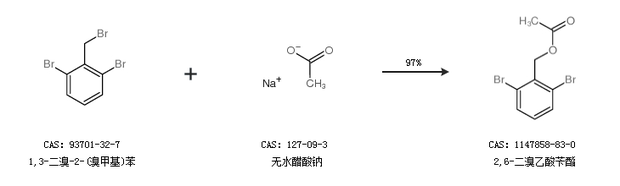 2.通過1,3-二溴-2-(溴甲基)苯和無水醋酸鈉合成2,6-二溴乙酸芐酯,收率約97%;