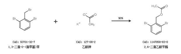 1.通過1,3-二溴-2-(溴甲基)苯和乙酸鉀合成2,6-二溴乙酸芐酯,收率約90%;