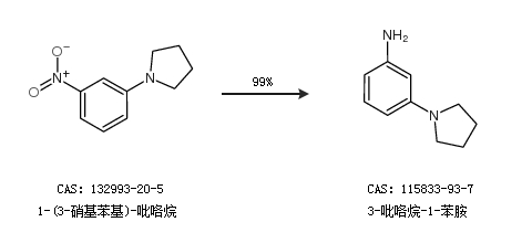 1.通過1-(3-硝基苯基)-吡咯烷合成3-吡咯烷-1-苯胺,收率約99%;