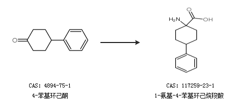 1.通過(guò)4-苯基環(huán)己酮合成1-氨基-4-苯基環(huán)己烷羧酸