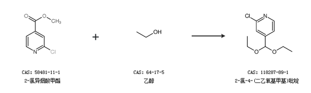 2.通過2-氯異煙酸甲酯和乙醇合成2-氯-4-(二乙氧基甲基)吡啶