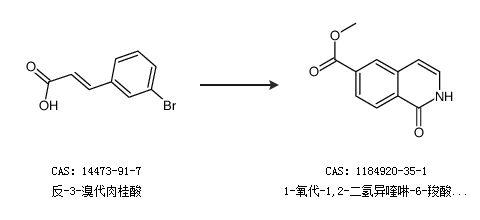 2.通過(guò)反-3-溴代肉桂酸合成1-氧代-1,2-二氫異喹啉-6-羧酸甲酯