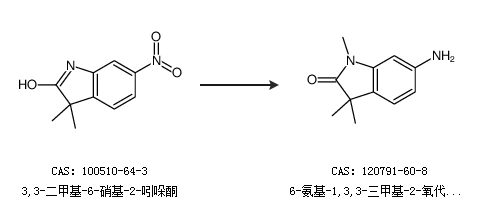 1.通過(guò)3,3-二甲基-6-硝基-2-吲哚酮合成6-氨基-1,3,3-三甲基-2-氧代吲哚啉