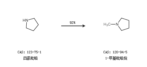 1.通過四氫吡咯合成1-甲基吡咯烷,收率約92%;