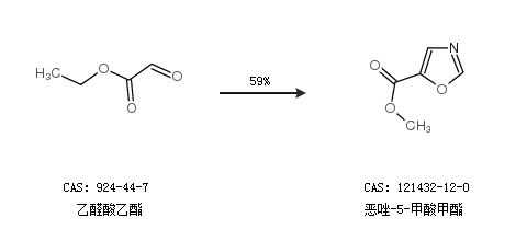 1.通過乙醛酸乙酯合成惡唑-5-甲酸甲酯,收率約59%;