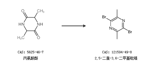 2.通過(guò)丙氨酸酐合成2,5-二溴-3,6-二甲基吡嗪