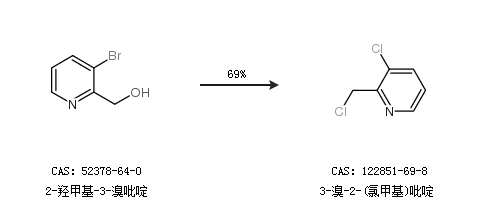 1.通過2-羥甲基-3-溴吡啶合成3-溴-2-(氯甲基)吡啶,收率約69%;