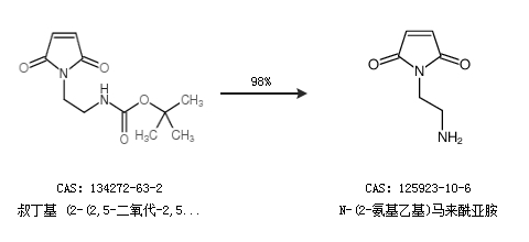 1.通過叔丁基 (2-(2,5-二氧代-2,5-二氫-1H-吡咯-1-基)乙基)氨基甲酸酯合成N-(2-氨基乙基)馬來酰亞胺,收率約98%;