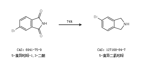 1.通過5-溴異吲哚-1,3-二酮合成5-溴異二氫吲哚,收率約74%;
