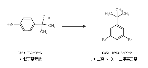 2.通過4-叔丁基苯胺合成1,3-二溴-5-(1,1-二甲基乙基)苯