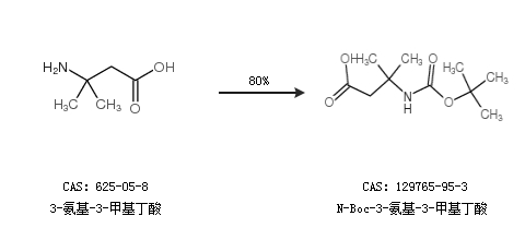 1.通過(guò)3-氨基-3-甲基丁酸合成N-Boc-3-氨基-3-甲基丁酸,收率約80%;