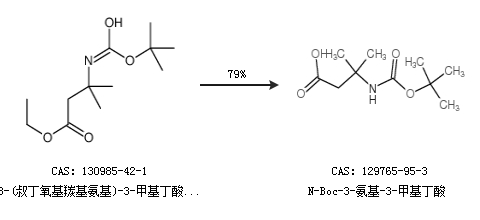 2.通過(guò)3-(叔丁氧基羰基氨基)-3-甲基丁酸乙酯合成N-Boc-3-氨基-3-甲基丁酸,收率約79%;