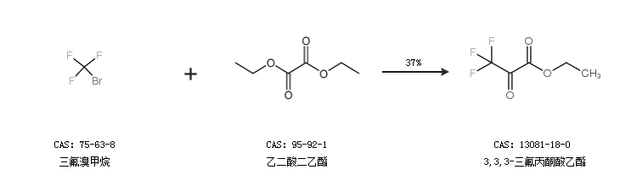 1.通過(guò)三氟溴甲烷和乙二酸二乙酯合成3,3,3-三氟丙酮酸乙酯,收率約37%;