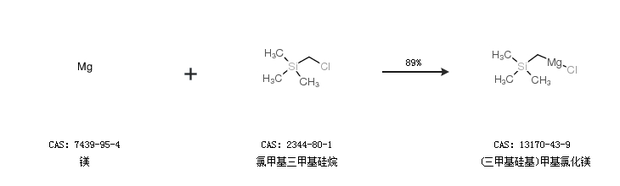1.通過鎂和氯甲基三甲基硅烷合成(三甲基硅基)甲基氯化鎂,收率約89%;