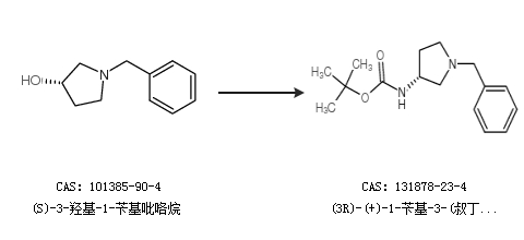 2.通過(S)-3-羥基-1-芐基吡咯烷合成(3R)-(+)-1-芐基-3-(叔丁氧羰基氨基)吡咯烷