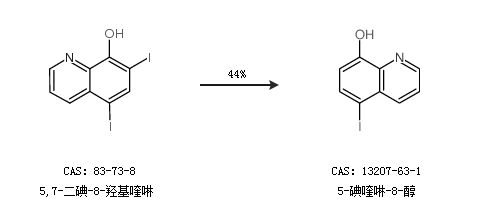 1.通過5,7-二碘-8-羥基喹啉合成5-碘喹啉-8-醇,收率約44%;