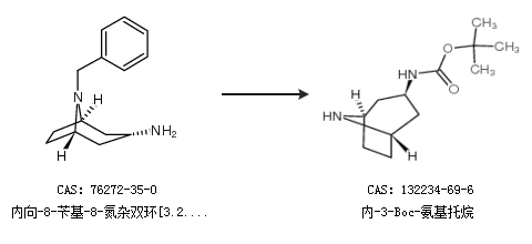 1.通過內(nèi)向-8-芐基-8-氮雜雙環(huán)[3.2.1]辛烷-3-胺合成內(nèi)-3-Boc-氨基托烷