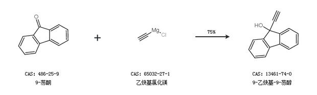 1.通過9-芴酮和乙炔基氯化鎂合成9-乙炔基-9-芴醇,收率約75%;
