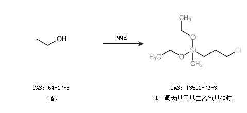 1.通過乙醇合成Γ-氯丙基甲基二乙氧基硅烷,收率約99%;