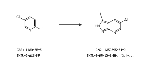 2.通過5-氯-2-氟吡啶合成5-氯-3-碘-1H-吡唑并[3,4-b]吡啶